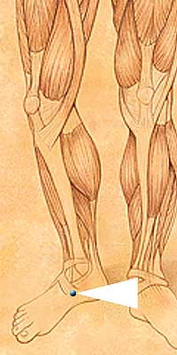 KI2 • Ran Gu • On the medial surface of the foot, in the depression inferior to the lower border of the tuberosity of the navicular bone.